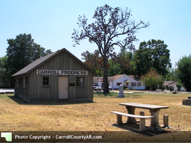 In 1869, Carroll County lost a large portion of its eastern mass to the newly created Boone County. As a result, the original county seat of Carrollton was no longer centrally located within Carroll County. After some political struggles, it was decided to move the county seat to Berryville in 1875. Soon, a tract of land was purchased from Blackburn Berry for the new courthouse at a cost of $100. The town was incorporated as early as March 11, 1876 and a new jail was constructed the same year. (Some records suggest a later incorporation date of May 18, 1878.) W.C. Stephens served as the first mayor. The new courthouse was completed in 1880 by J. Polk Fancher and occupied by 1881. Construction costs were minimized by using bricks of local dirt clay, burned in a kiln less than fifty yards of the construction site. During an extensive remodel, a third floor was added to the court house in 1904. In addition to civic functions, the courthouse was occasionally used for public entertainment and social activities. Prisoners were also detained in the NW corner of the building at times. Shortly after the completion of the courthouse, the city developed an octagon-shaped shade park at the center of the public square, complete with perimeter hitching posts and a public well. The annual Rose Parade at the park was a very popular event. In later years, droughts and general water shortages prompted the city to connect the public well to the town spring, near the old mill. The town spring site was a popular social center for young people, and picnics and late night serenades were common. J.W. Freeman was contracted to install the pipe line and pump. Another spring was located east of town and was known as Freeman's Spring. Berryville City Hall was planned and built by William E. Arrick. Today, the public well in the park has been filled in, and the square has been split in half by HWY 62. The historic 1880 Carroll County Courthouse now functions as the Heritage Center Museum.